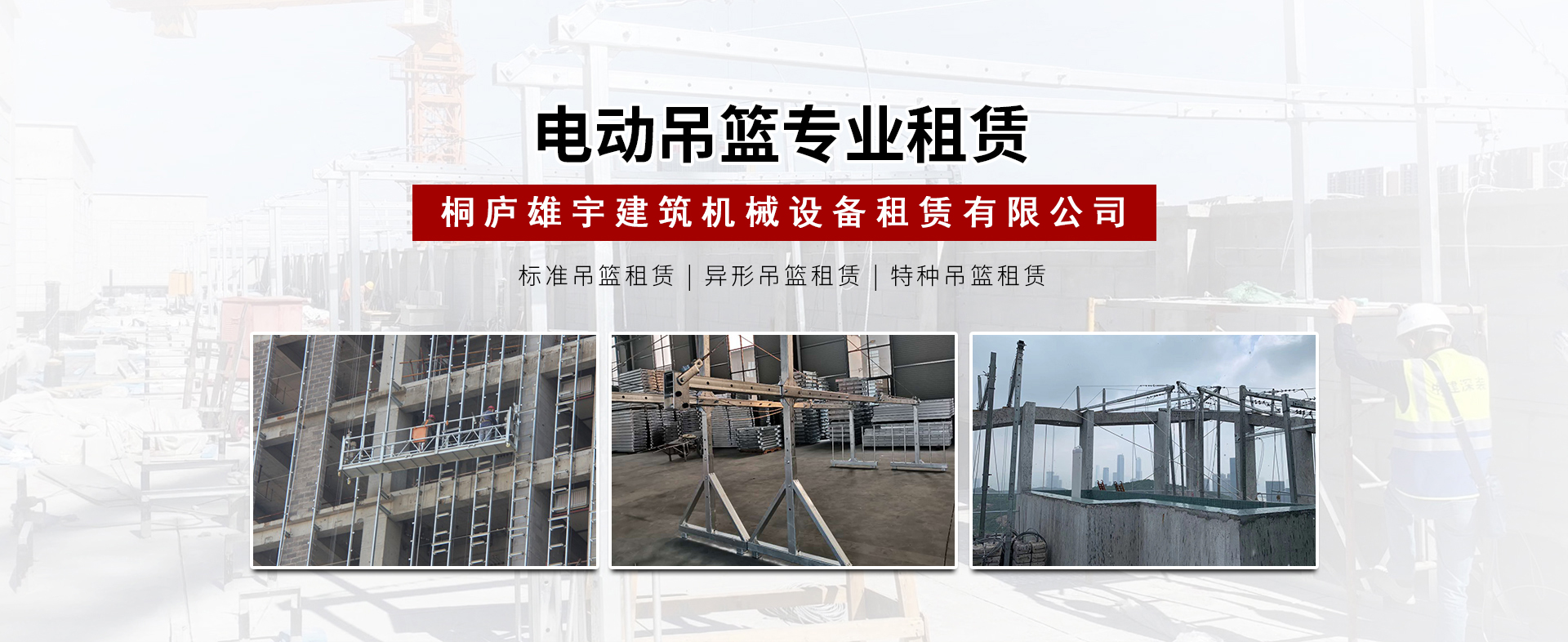 桐廬雄宇建筑機(jī)械設(shè)備租賃有限公司是一家專業(yè)從事吊籃租賃業(yè)務(wù)的公司,本公司擁有普通電動(dòng)吊籃以及其他專用吊籃設(shè)備。公司自成立以來,承蒙業(yè)內(nèi)同仁已經(jīng)各界朋友的關(guān)愛與支持,始終秉承"以客戶為根本,以信譽(yù)求發(fā)展"的經(jīng)營(yíng)理念,堅(jiān)持"精心管理,優(yōu)質(zhì)服務(wù)"的服務(wù)宗旨,多年以來...